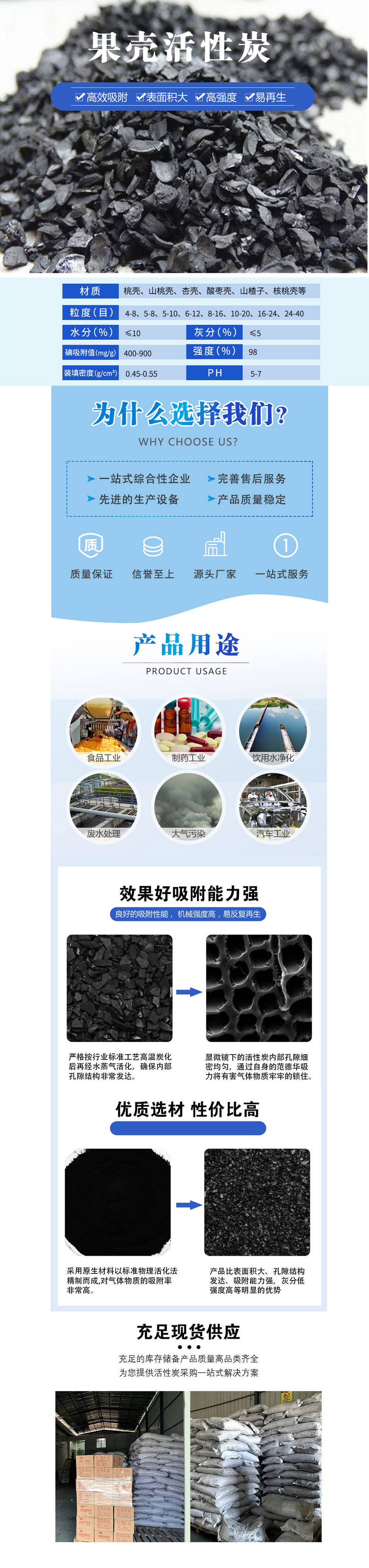 龍華的果殼活性炭選用優質杏殼、桃殼、核桃殼、棗殼等果殼為原料,經系列生產工藝精制而成,外觀呈黑色顆粒狀。果殼活性炭優點是孔隙結構發達,比表面積大,吸附性能強,庫層陰力小,化學性能穩定,易再生。適用于高純度的生活飲用水、工業用水和廢水處理的深度凈化脫氯、脫色、除臭和黃金提煉等方面。