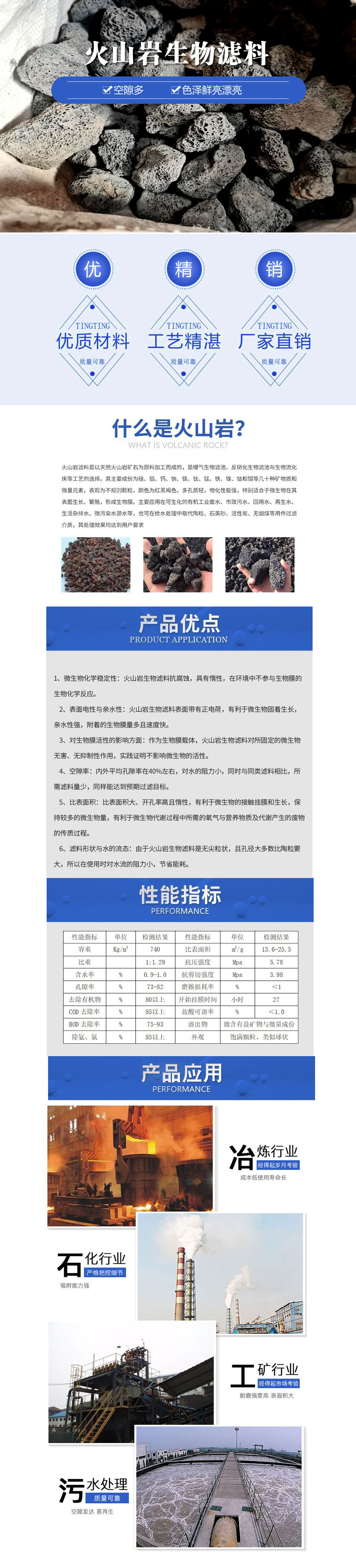 火山巖生物濾料是由火山巖礦石,經(jīng)過選礦、破碎、篩分、研磨等一系列工藝加工而成的粒狀濾料,其主要成份為硅、鋁、鈣、鈉、鎂、鈦、錳、鐵、鎳、鈷和鉬等幾十種礦物質(zhì)和微量元素,表觀為不規(guī)則顆粒,顏色為紅、黑褐色,多孔質(zhì)輕,特別適合于微生物在其表面生長、繁殖,形成生物膜。