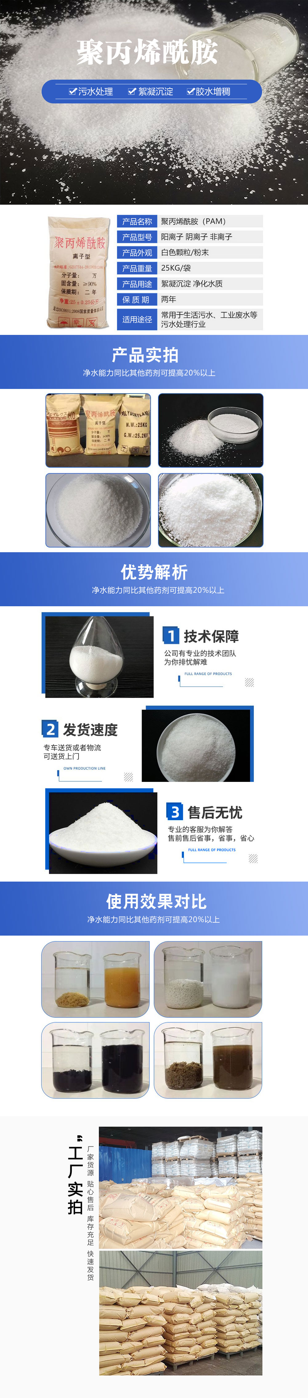 龍華凈水生產的聚丙烯酰胺采用的原材料單體是DAC和DMC。陽離子聚丙烯酰胺(CPAM)是線型高分子化合物,由于它具有多種活潑的基團, 可與許多物質親和、吸附形成氫鍵。主要是絮凝帶負電荷的膠體,具有除濁、脫色、吸附、粘合等功能,適用于染色、造紙、食品、建筑、冶金、選礦、煤粉、油田、水產加工與發酵等行業有機膠體含